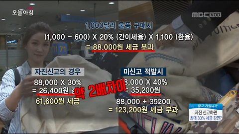 황금연휴 해외 여행을 계획사는 사람들도 있고 이미 여행을 떠나신 분도 있을겁니다. 새로운 문물을 경험하고 현지에서 모처럼 쇼핑까지 하고나면 아마도 한 번쯤 세금신고에 관해 고민을 하게 될 것입니다. 비행기 안에서 '여행자 휴대품 신고서'를 작성하면 괜찮겠지라는 안일함에 저지르는 실수. 1인당 600불 초과시 입국전 세관신고를 통해 초과물품에 대한 세금을 내야 하지만 어쩌다보니 공항 입구에서 캐리어를 열고 실랑이를 하는 자신을 보게 될 경우도 있습니다. 자진신고를 하면 30% 세금 감면 혜택을 주어지는데도 몰랐다. 한번만 봐달라며 기분 좋았던 여행의 여운을 망치지 말아야 겠어요. 자진신고로 인한 세금혜택 1000달러 물품 구매시(1000달러 - 600달러) X 20% (간이세율) X 1,100(환율) = ..